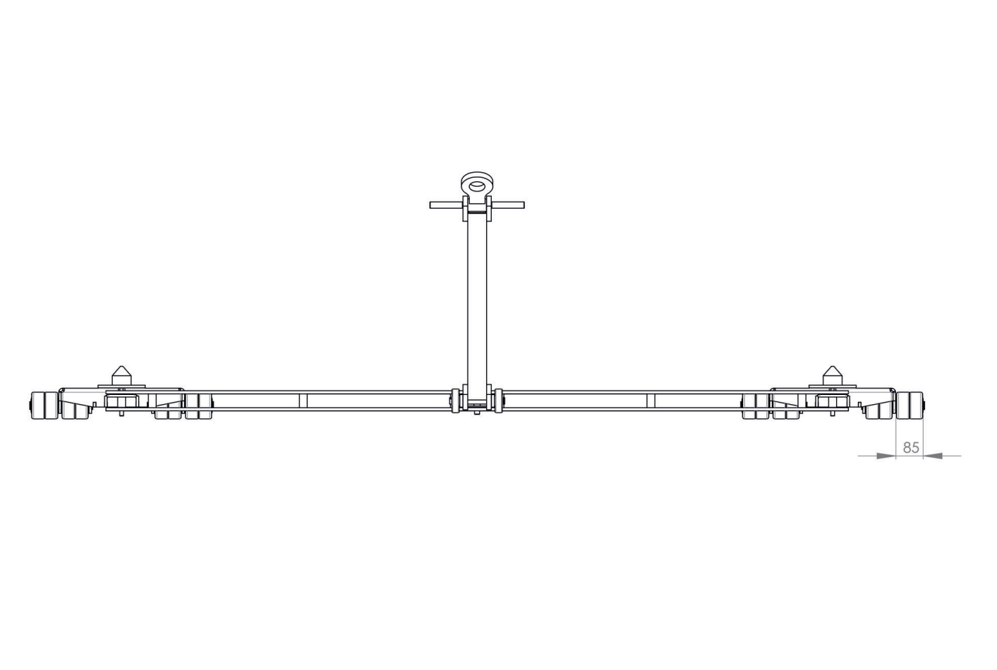 - „Weld-on Cone“-Ausführung inkl. 2 modifizierten Drehtellern bzw. Fahrwerkskassetten mit Container-Aufnahme, nicht verriegelbar, und verlängerten, zweiteiligen Spurstangen (2,26 m) für ISO-Container. Die Tandemlenkwerke erhalten Sie inklusive Deichsel mit Zugöse.