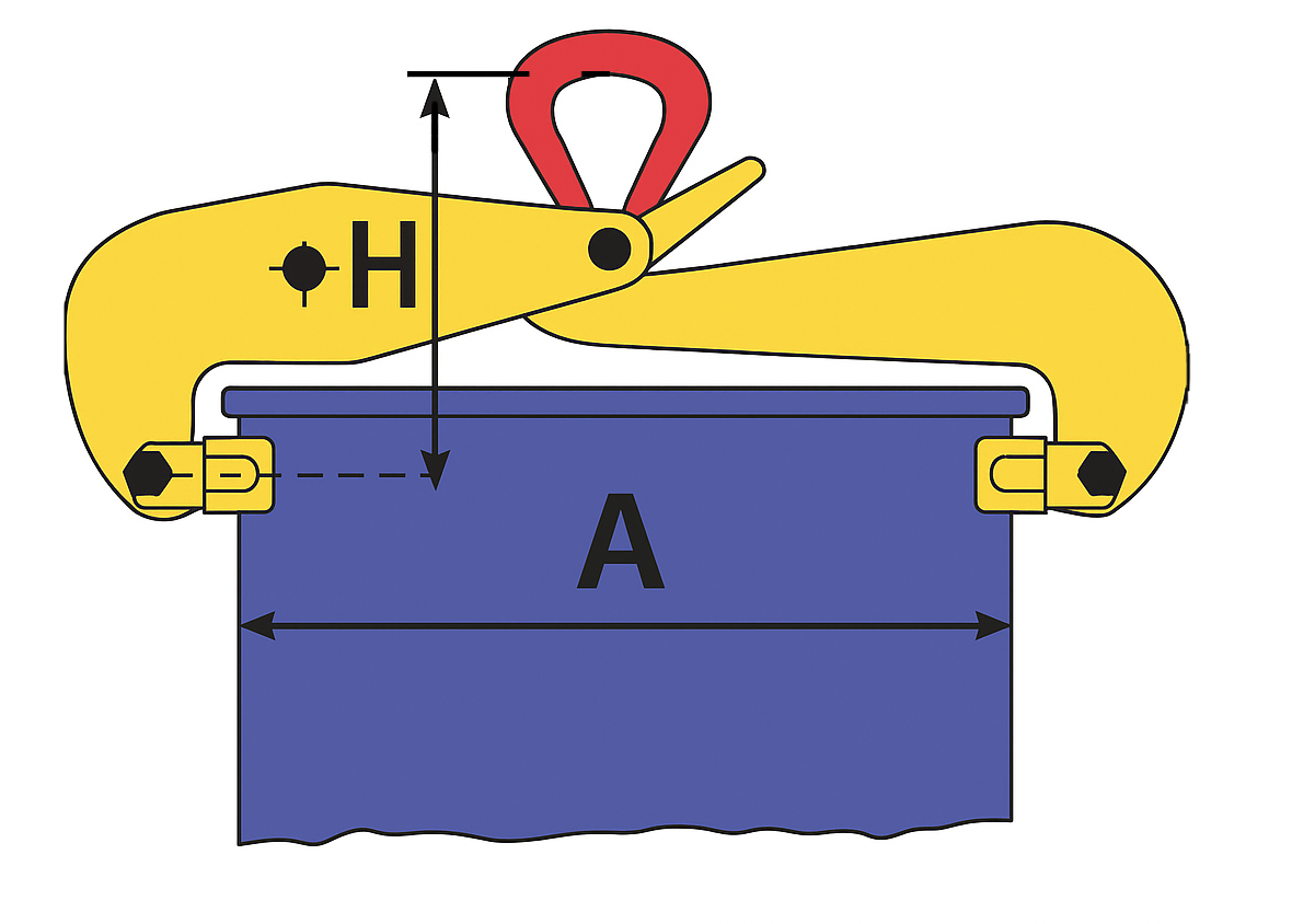 Fassgreifer zum senkrechten Transportieren von Sicken- oder Spannringfässern mit Aufhängung für Einfachhaken nach DIN 15401.