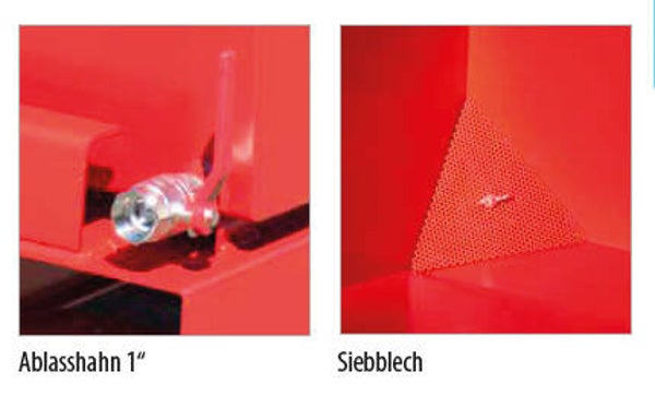 - Siebblech und Ablasshahn 1" zum Trennen der Flüssigkeiten von Feststoffen
