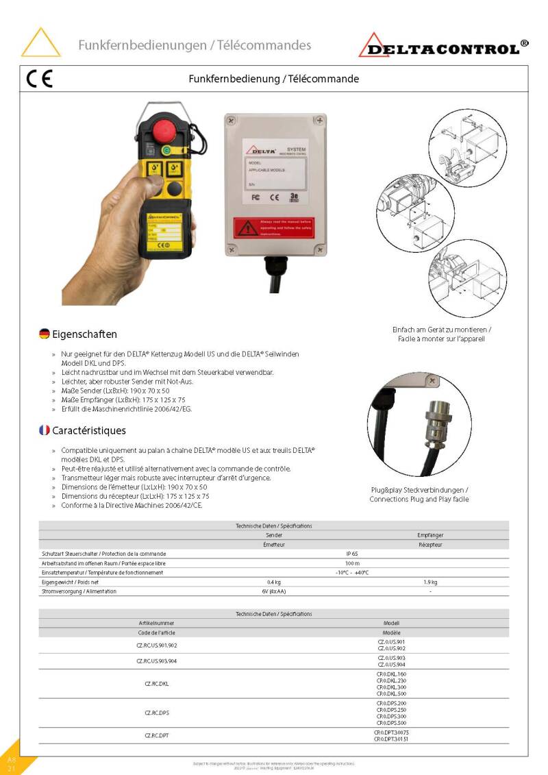 DELTACONTROL Funksteuerung für Seilwinde DPT 300kg 500kg
