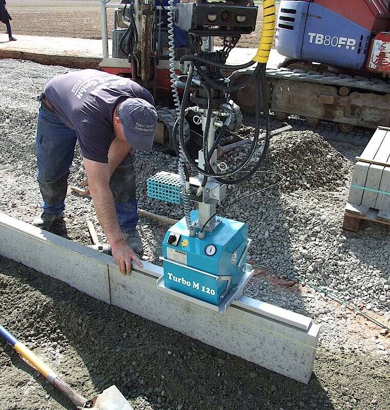 Alle glatten/rauen und luftdurchlässige Platten können mit dem Tubi-Levator problemlos gehoben, transportiert und verlegt werden. Sofort nach dem Aufsetzen saugt sich der Levator fest. Der Levator gibt die Platte erst wieder frei, wenn Sie es wollen: hierzu wird ein Ventil geöffnet.