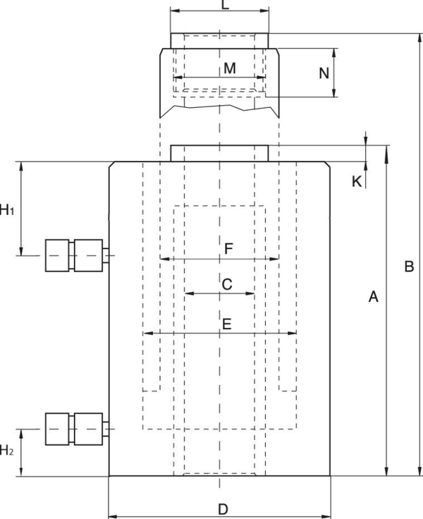 Hartverchromter Hohlkolben. Außengewinde zur Befestigung.