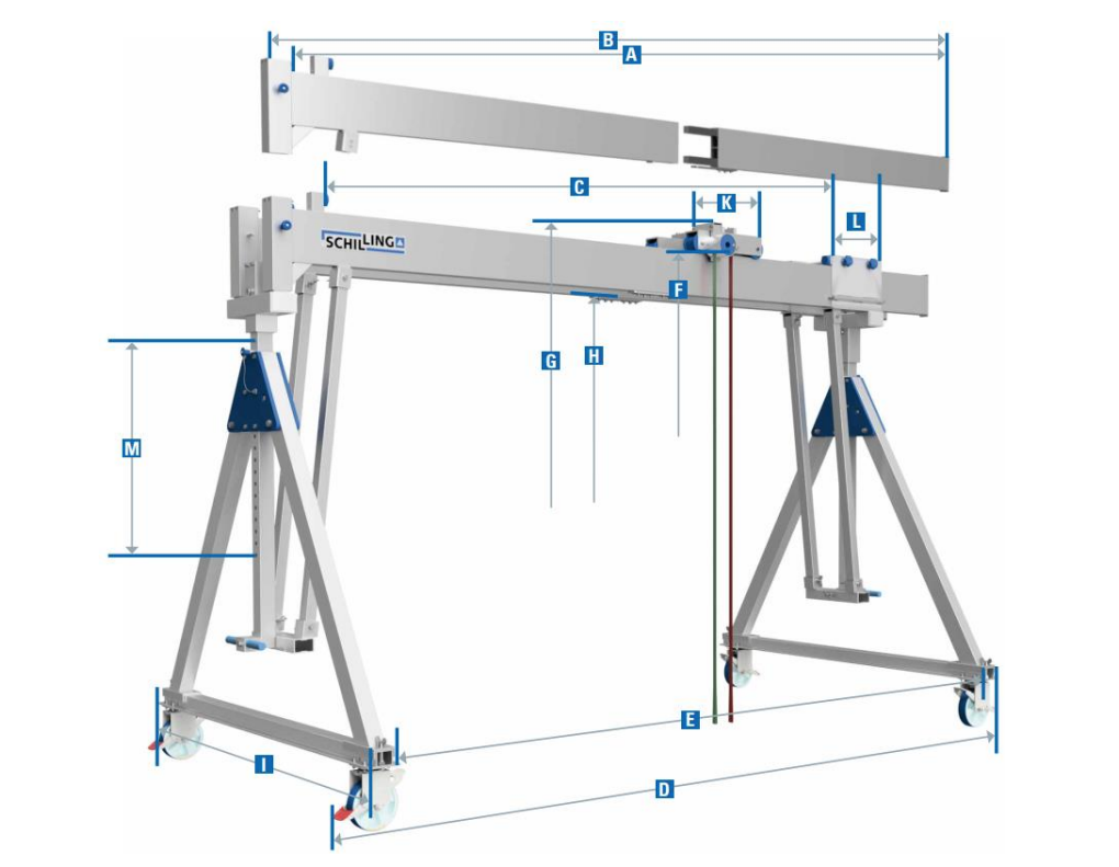 Schilling Alu-Portalkran, fahrbar, Doppelträger, Traglast: 1.000 kg + 1.500 kg bis 4m Trägerlänge