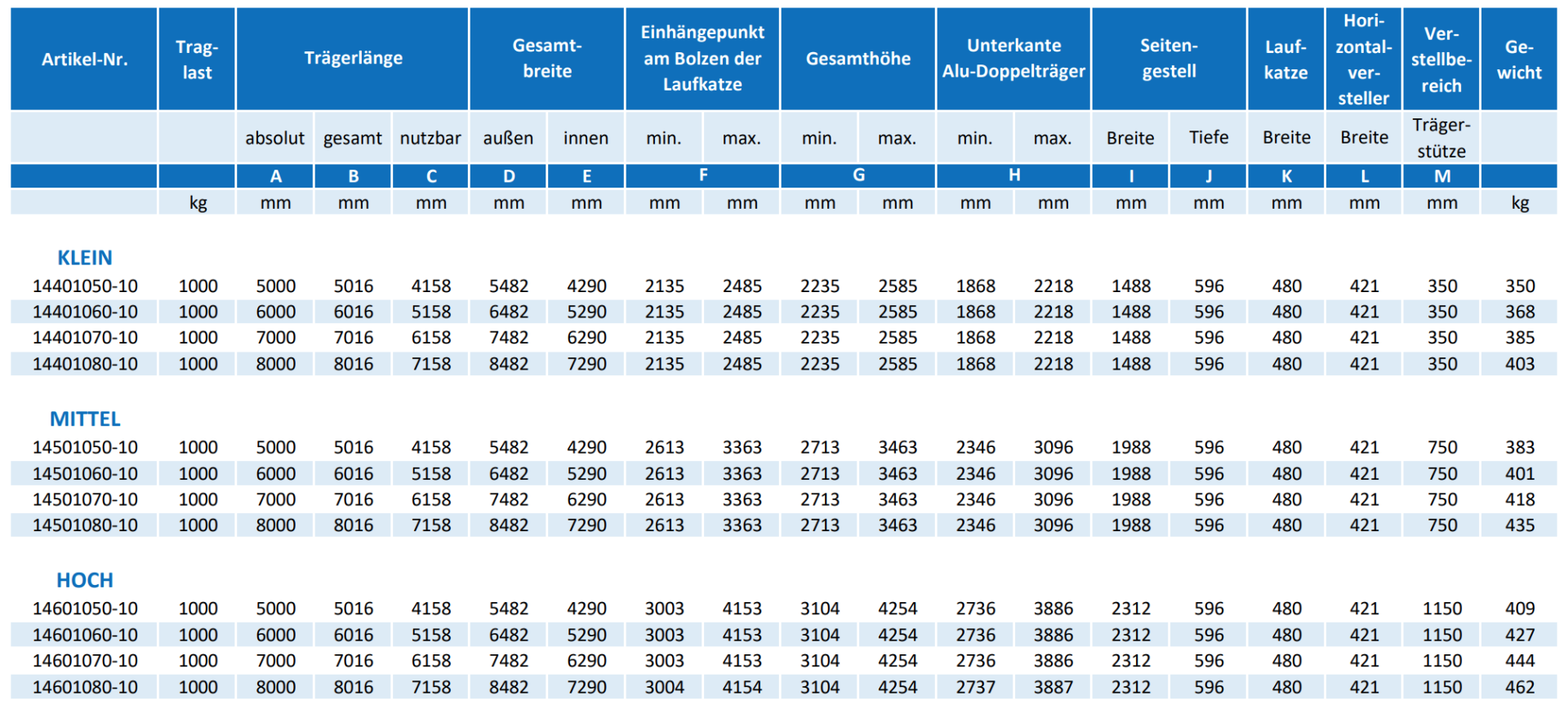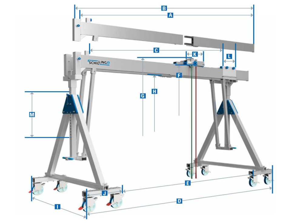 Schilling Alu-Portalkran, fahrbar, Doppelträger, Traglast: 1.000 kg ab 5m Trägerlänge