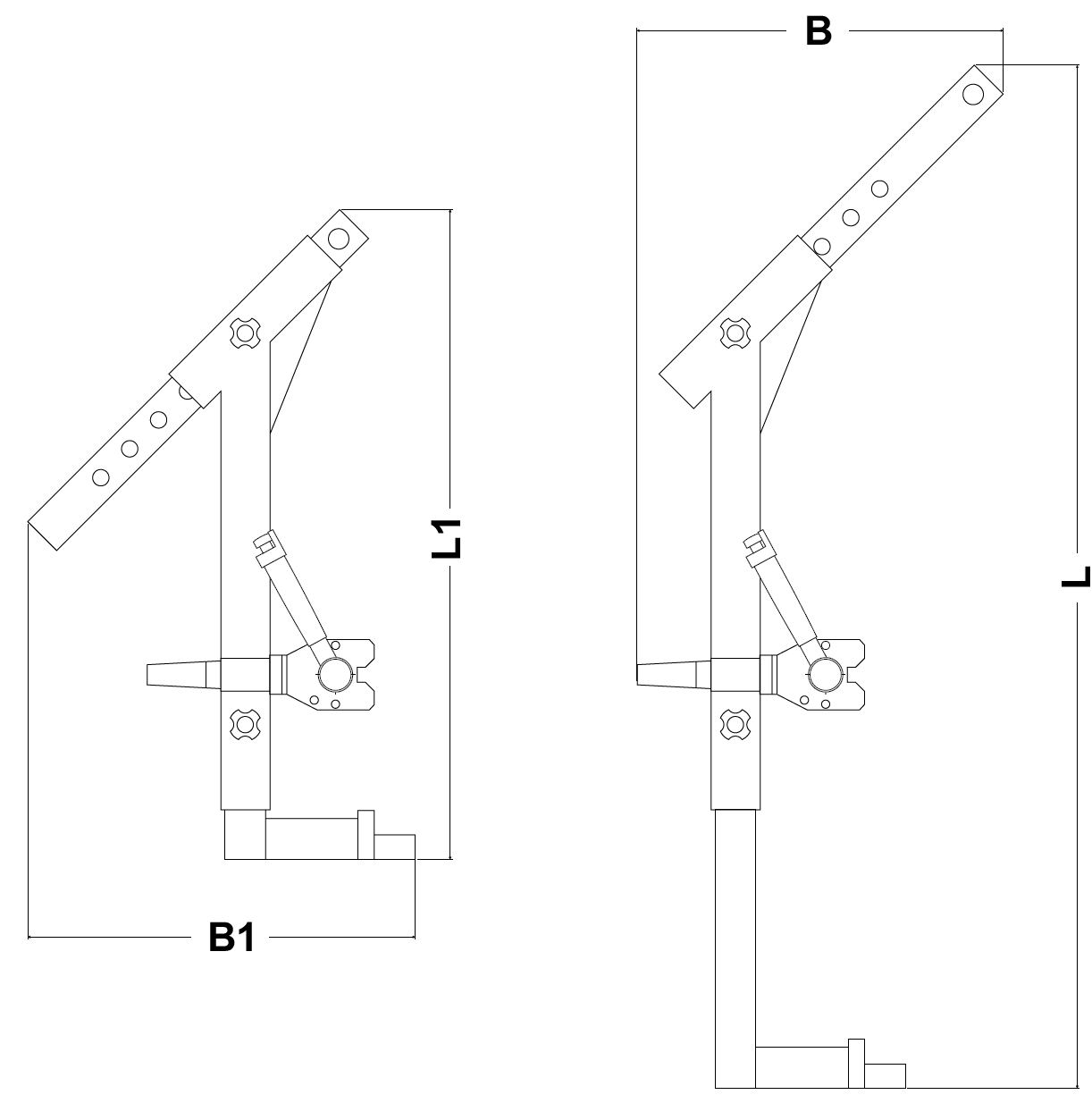 Gesamthöhe und Schwerpunkt können über Steckbolzen eingestellt werden. Ebenso kann das Gerät für bis zu 20%