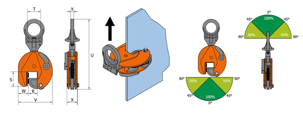 Diese Sonderausführung mit beweglichem Universaltragring und zwei Zahnringen ist speziell für das Transportieren, Heben und Senken von Hollandprofilen bzw. Konstruktionseinheiten mit eingebauten Hollandprofilen verwendbar.