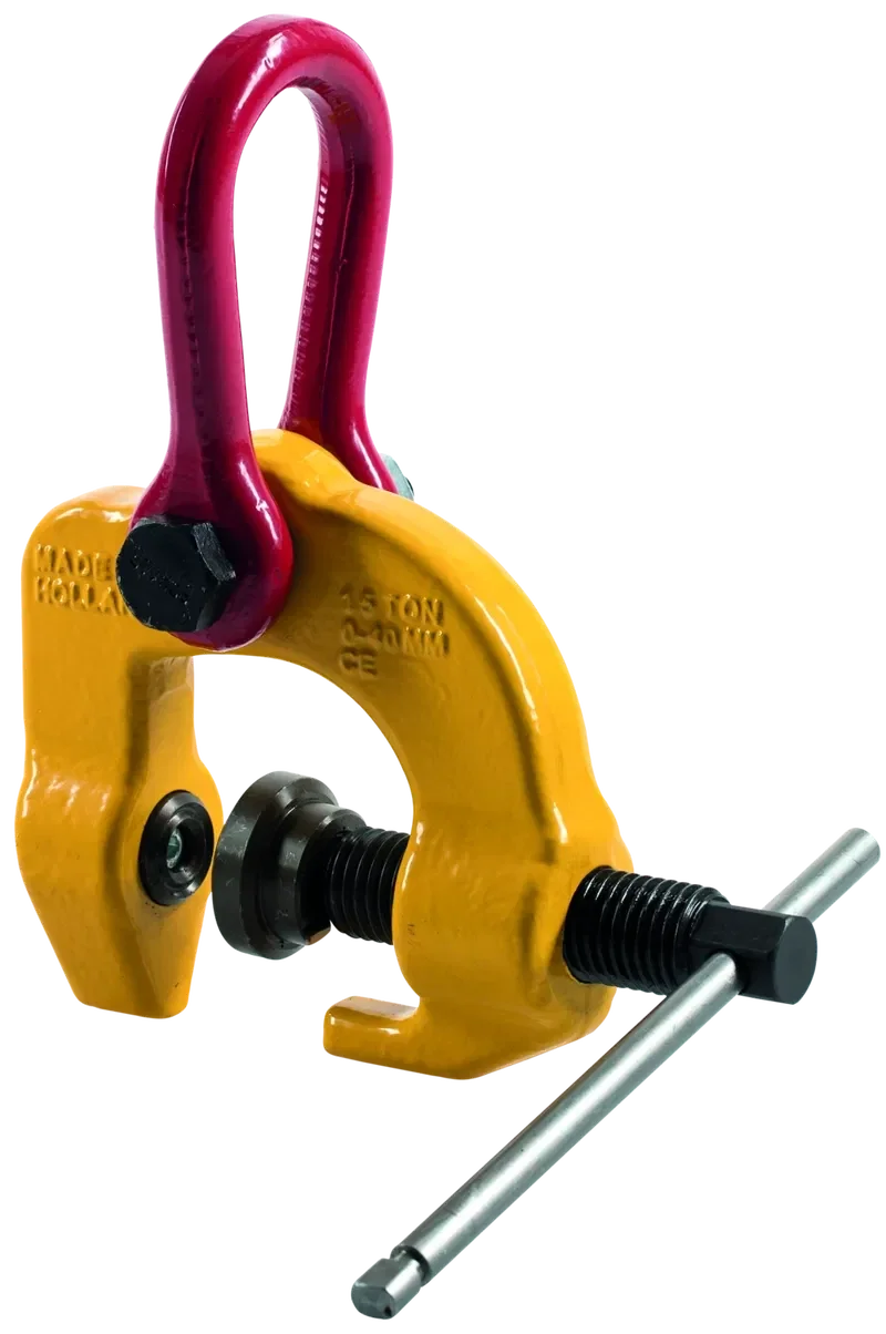Universalschraubklemme für den vertikalen und horizontalen Transport sowie für die Montage von großen Stahlkonstruktionsteilen.