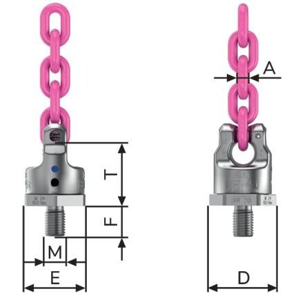 | Artikel-Nr. | Bezeichnung | WLL (kg) | Gewicht (kg) | A (mm) | D (mm) | E (mm) | F (mm) | M | T (mm) |