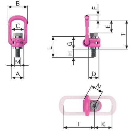 | Typ | Art.-Nr. | WLL (t) | Gewicht (kg) | A | B | C | D | E | F | G | H Stand | H Max | J | K | L Stand | L Max | M | N | SW | ISK | T |