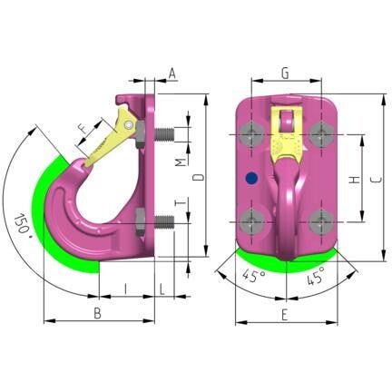| Einsatzbereich | Anbauhaken zur Montage an Lasten oder Lastaufnahmemitteln; zum Einhängen von Anschlagmitteln, auch als Zurrpunkt verwendbar. |